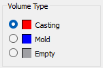 VOLUME TYPES. The finite elements included in the casting meshes have special properties and are elements of the Casting type, while the finite elements included in the mold meshes have other properties and are of the Mold type. This division is due to the fact that in addition to calculating the temperature fields, which is performed in all volumes of the calculation area, additional problems are solved in the Casting type volumes: melt flow, phase transition (solidification), formation of shrinkage cavities, macro- and microporosity, structure, etc.