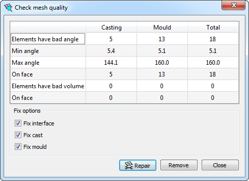 The Check Mesh Quality button checks the mesh quality according to various criteria and opens a dialog for viewing the report and correcting bad elements. See Mesh Quality Control section for more details. |