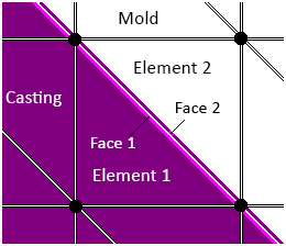 In general, each of these faces can have its own index, for which unique conditions can be set. But in normal conditions, when modeling casting technologies, the same parameters are set for both faces. Therefore, either such faces have the same boundary index, or they have different indexes, but the parameters assigned to these indices are similar.