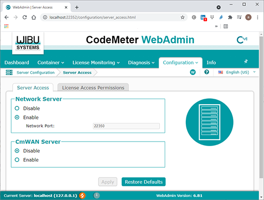 On the Server Access tab select Enable in Network Server group (see the figure below). At the end press Apply button.
