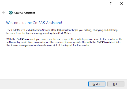 Click the License Update button. The CodeMeter Field Activation Service assistant will be launched (see the figure below).
