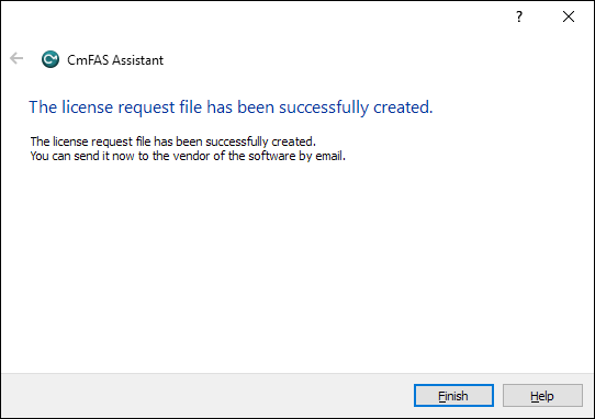 Select the location on the disk where the license request file will be written and click the Commit button. When the file is written, you can close the assistant window, the Finish button (see Fig. Below).